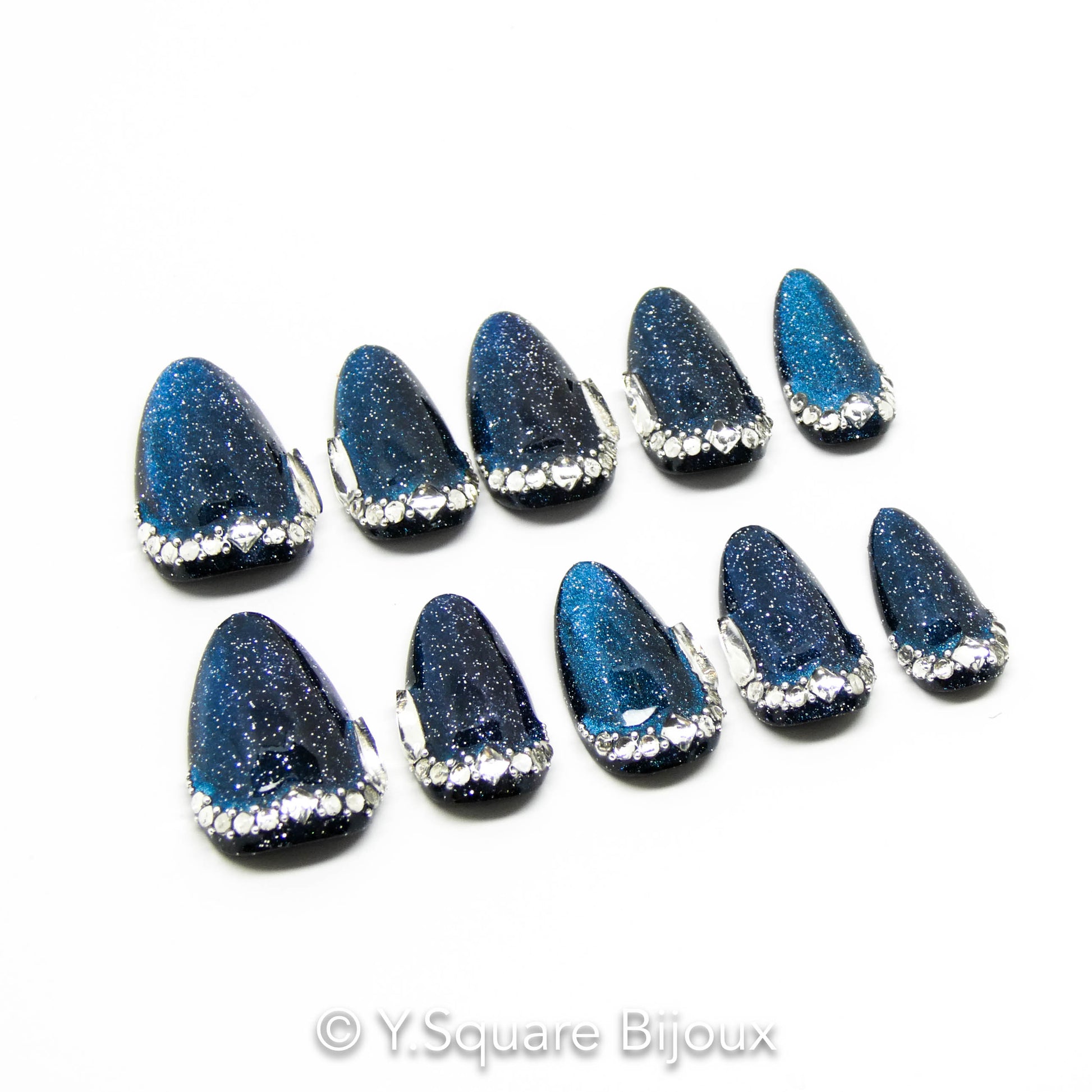 < Saphir >Y.Square Faux Ongles Fait Main Réutilisables